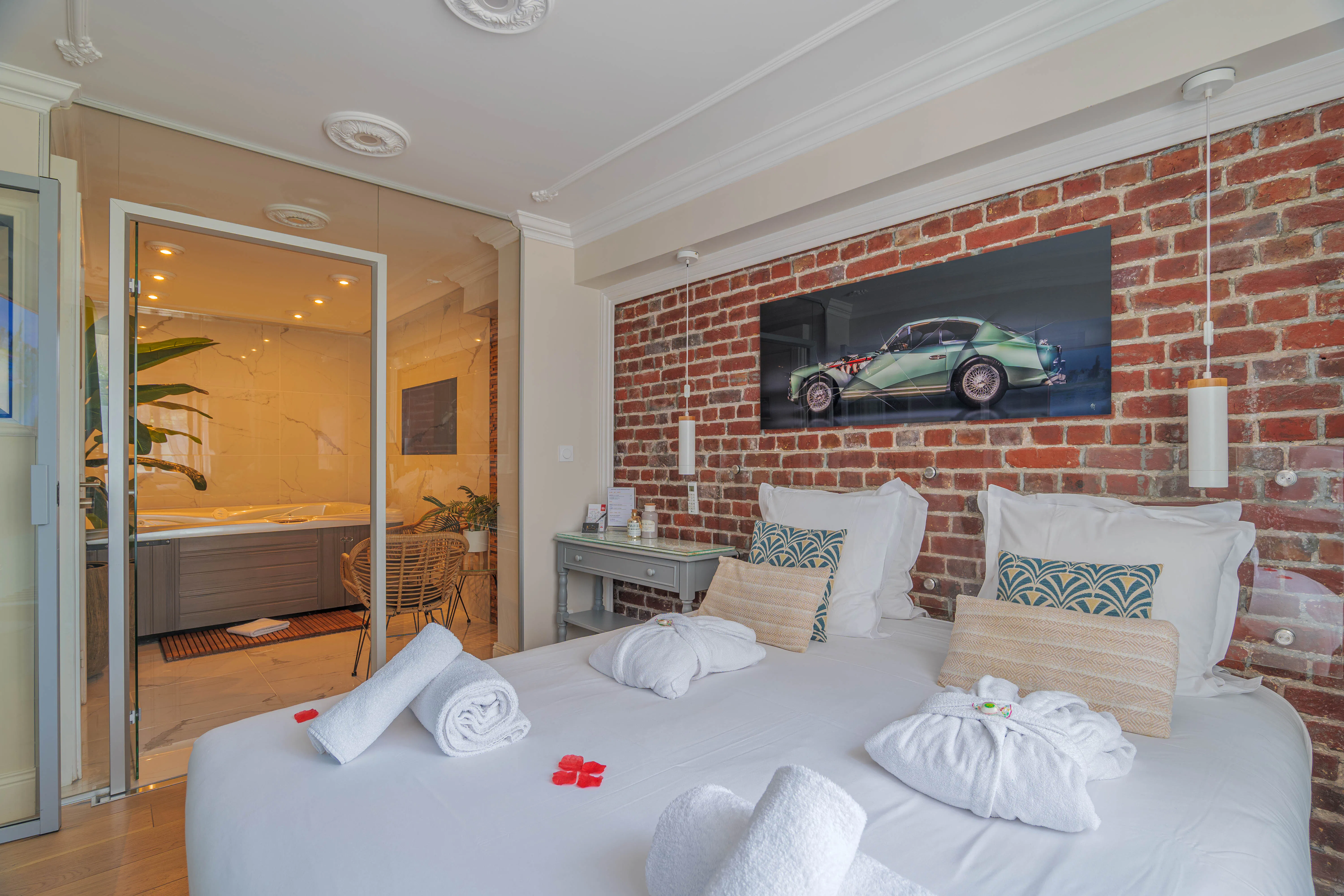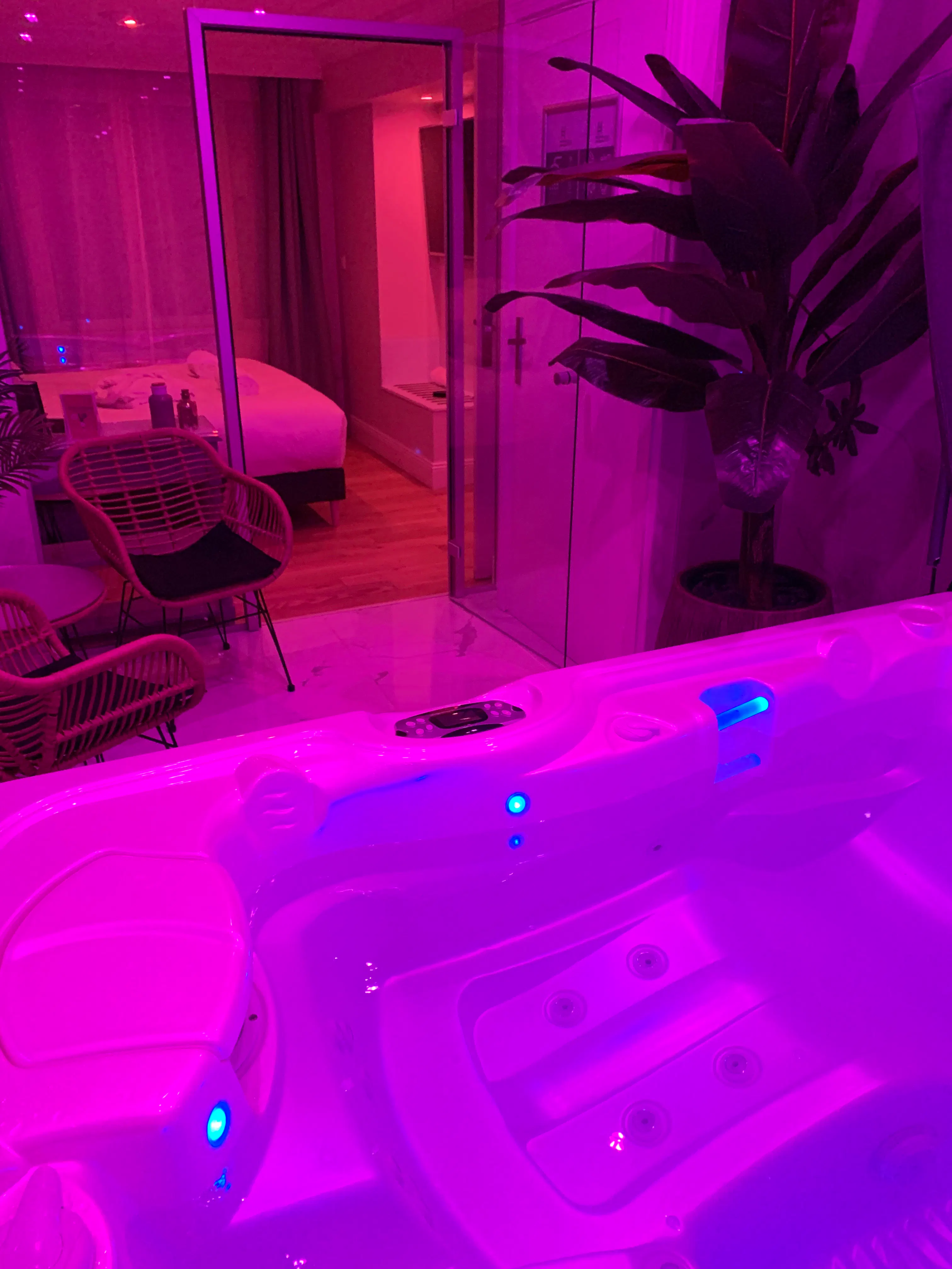 Indulge in Suite 001, designed to offer you an unforgettable relaxation experience. Enjoy a moment of tranquility, alone or as a couple, savoring the benefits of the steam shower and the premium private jacuzzi, all to yourself.